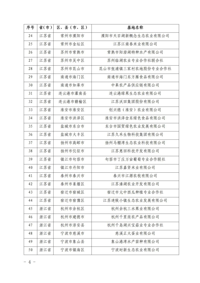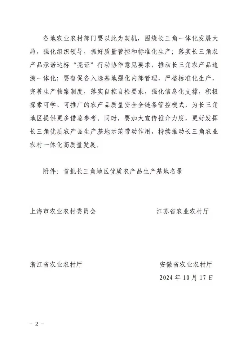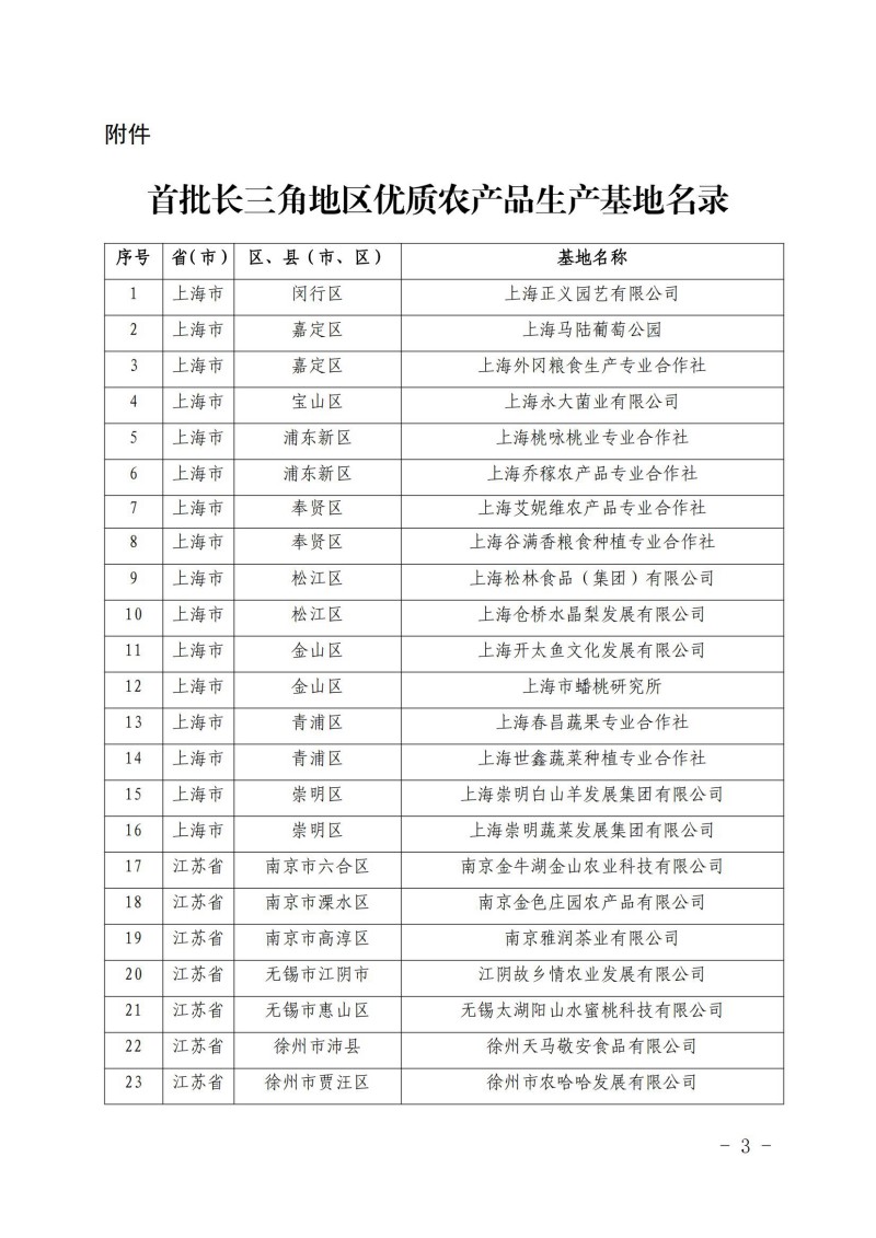 首批長三角地區(qū)優(yōu)質農產品生產基地名錄